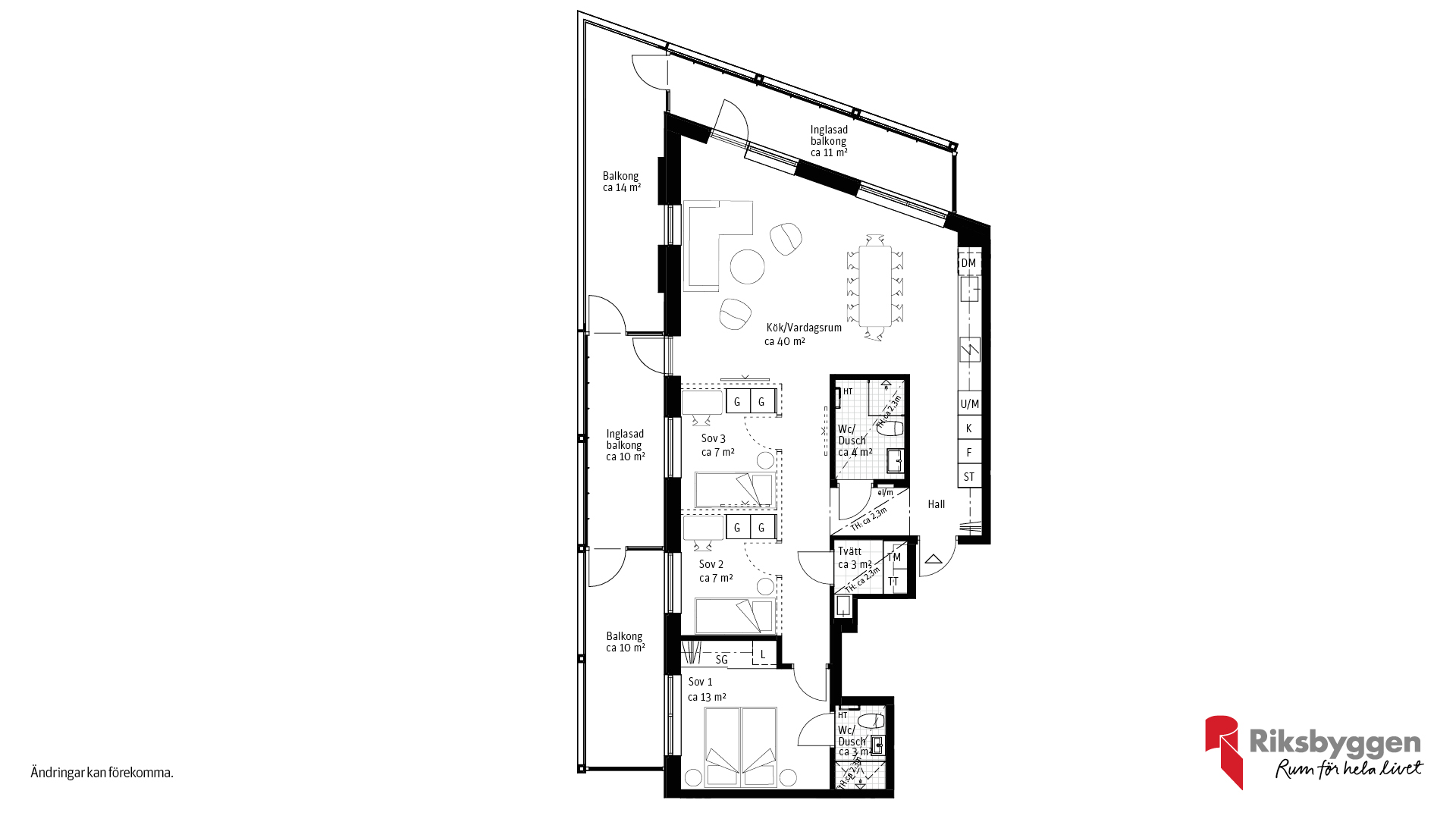 Rymlig 4 rok med balkong runt om och generösa sociala ytor. En bostad där ljus och rymd står i fokus. Här bor du i en genomtänkt 4 rok med balkonger, två inglasad som förlänger säsongen och två öppna. Det stora kök och vardagsrum i öppen planlösning erbjuder gott om plats.Tre sovrum ger flexibilitet för familj, gäster eller hemmakontor. Ett badrum med tvättdel och en wc/dusch, som gör vardagen extra smidig. Möjlighet att göra frånval på sovrum till förmån för yta istället för rum.