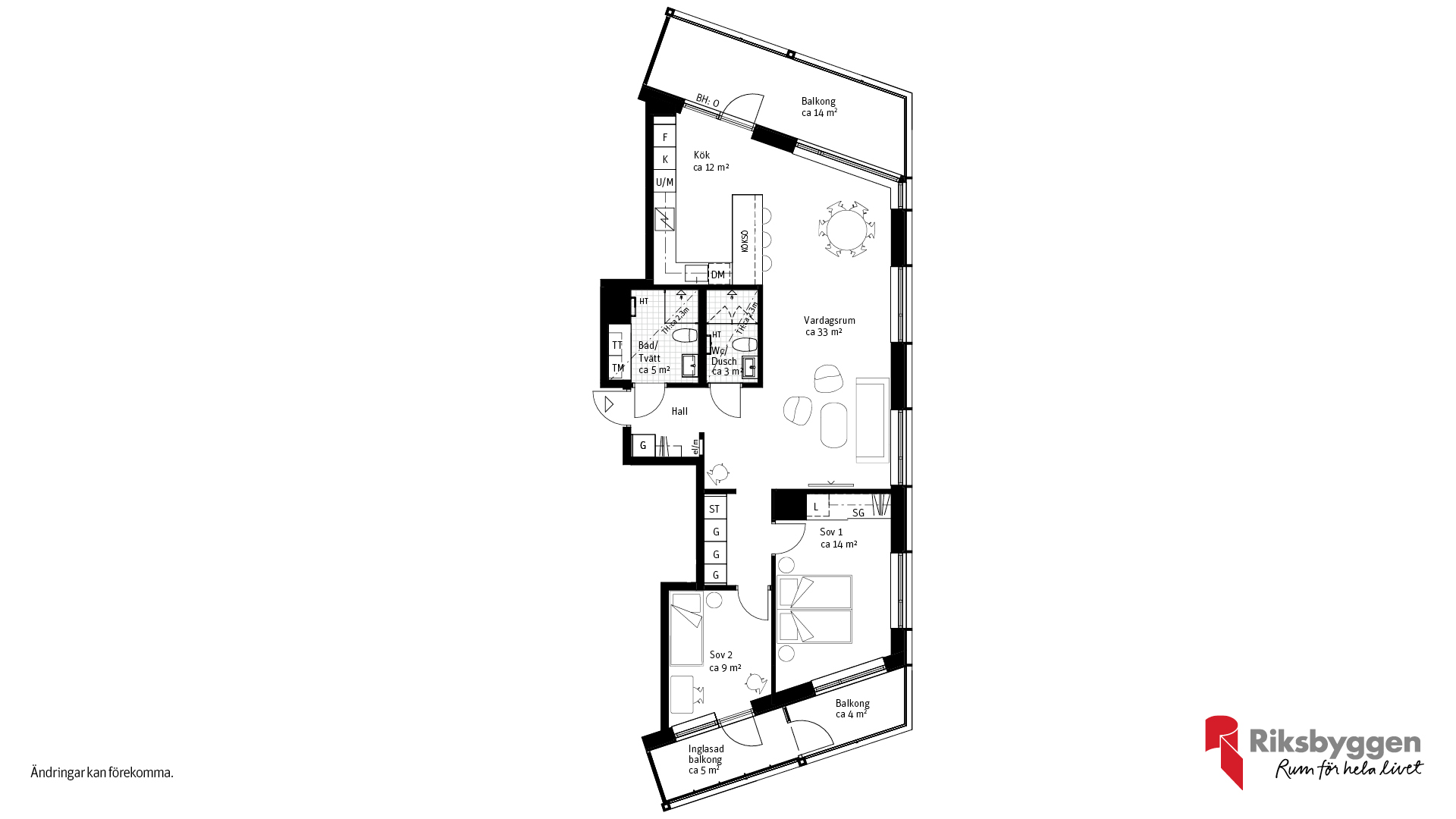Genomtänkt 3 rok om 89 kvm, ett hem med fint ljusflöde från tre väderstreck och tre härliga balkonger, en i väster läge med utgång från kök. Från sovrum en inglasad och en öppen. Det stora kök/vardagsrummet bjuder på generösa sociala ytor, perfekt för både vardagsmys och middagar med vänner. Här finns två välplanerade sovrum, ett badrum med tvättdell och en wc/dusch.. En bostad som kombinerar stil, funktion och maximal komfort.