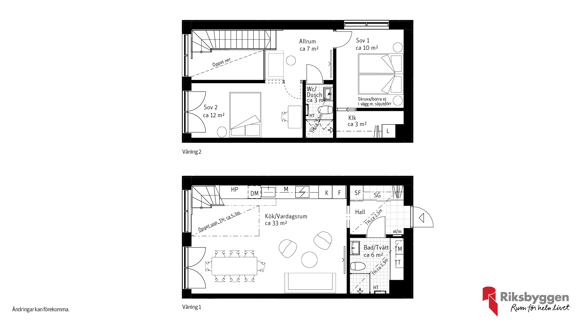 Ett trivsamt boende i två plan med smarta ytor och härlig rymd. Nedre plan bjuder på ett stort och socialt kök/vardagsrum med plats för både matlagning, middagar och avkoppling. Här finns även badrum med tvättdel och en välkomnande hall med bra förvaring. På övre plan väntar två rymliga sovrum, ett allrum som passar perfekt som arbetsplats eller tvrum. WC/dusch. En planlösning som ger gott om plats för både gemenskap och privatliv, idealiskt för ett för ett flexibelt vardagsliv.