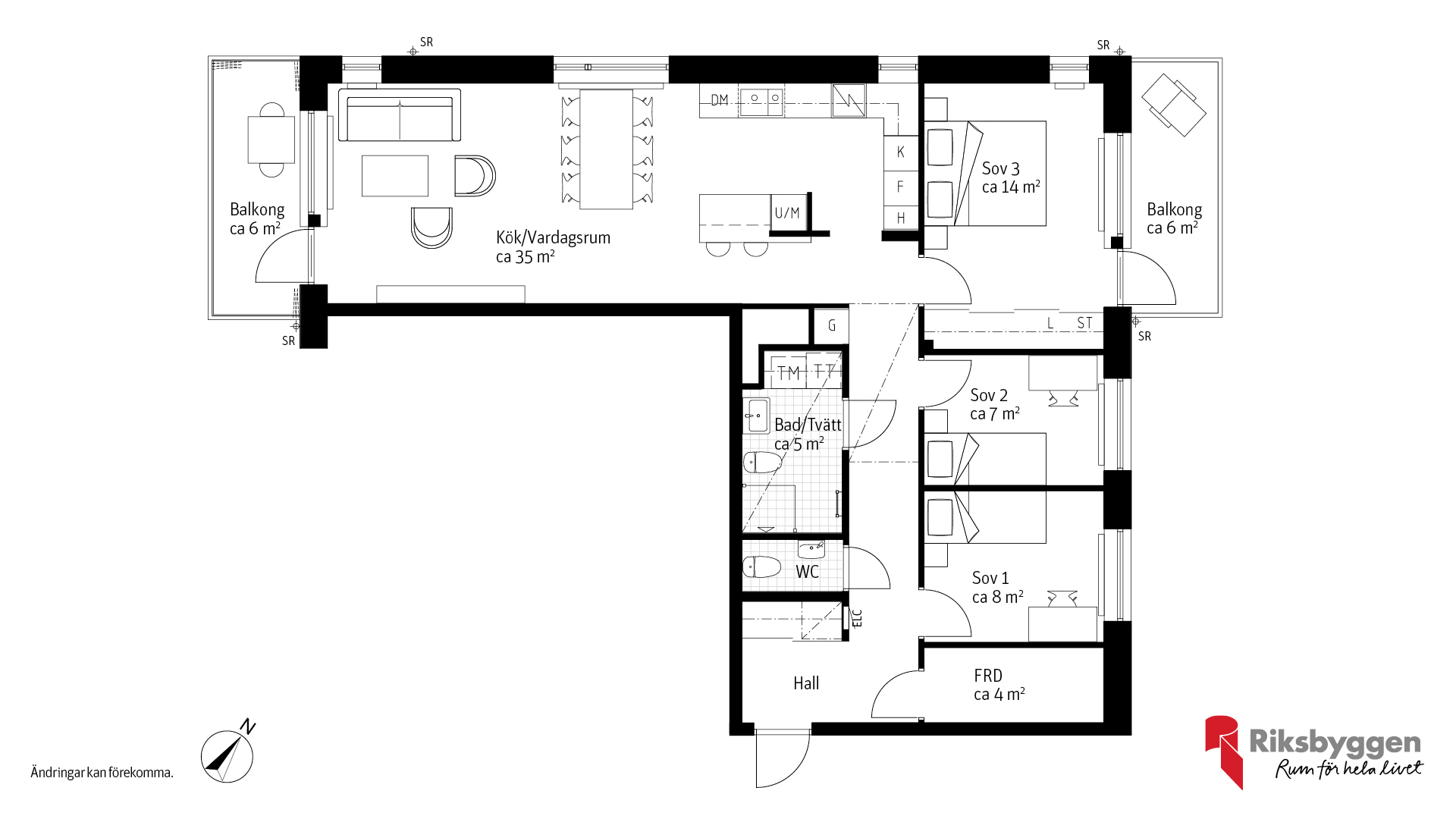 Stor 4:a med två balkonger | Riksbyggen