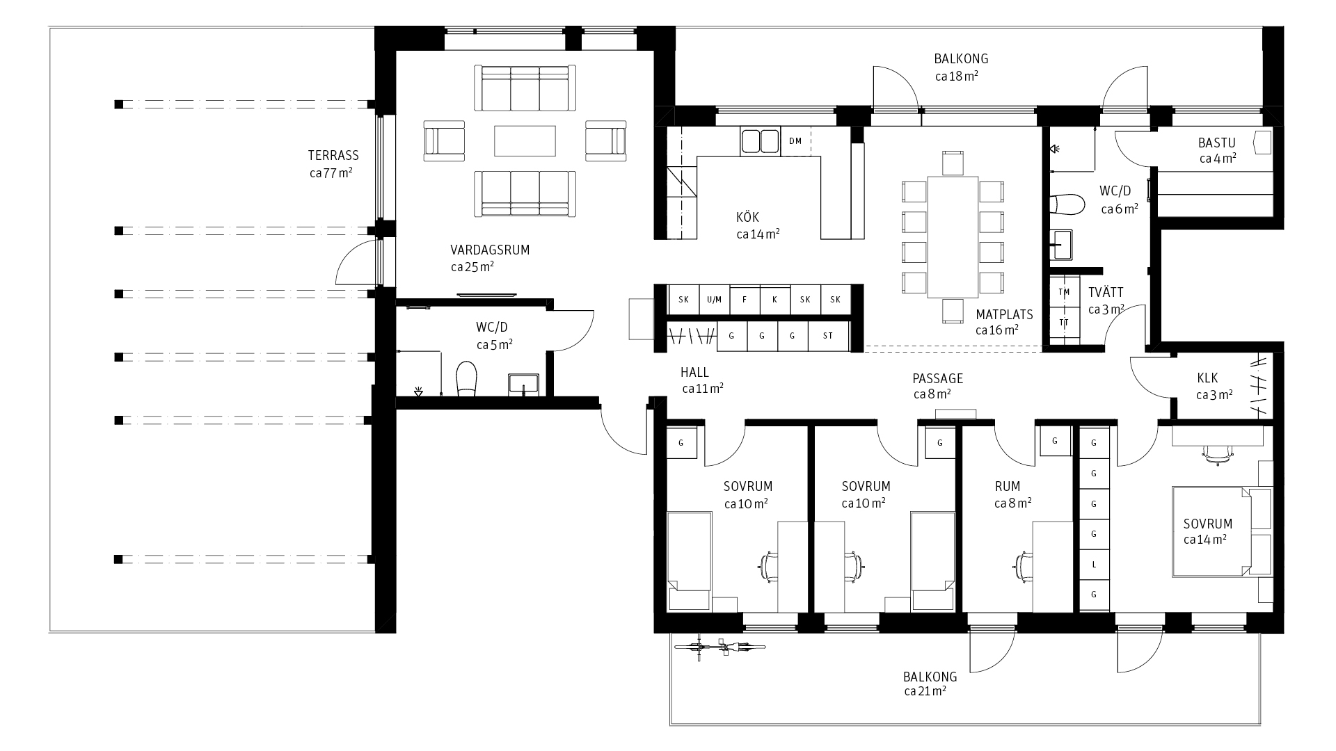 Välkommen till denna unika 5:a högst upp i huset om hela 145 kvm. Här får du två stora balkonger och en fantastisk terrass om 77 kvm i bra solläge. Välutrustat kök med bra förvaring och arbetsytor. Intill köket finns en rymlig yta med plats för ett matbord till hela familjen. Två badrum, varav det ena med bastu och tvättmaskin och torktumlare.Master bedroom med utgång till balkong, samt klädkammare precis intill. Ingen avgift första året! Flytta in direkt.