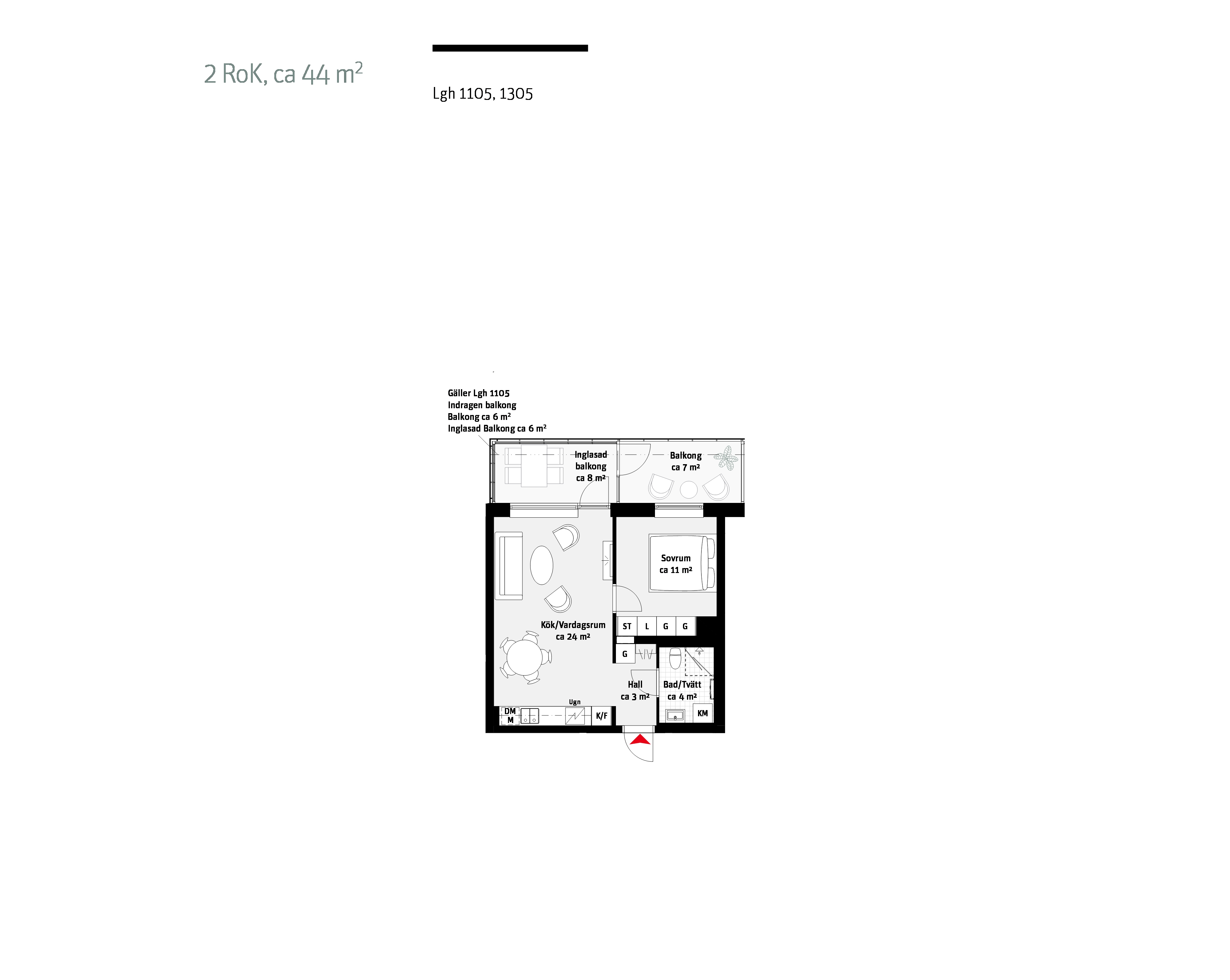 • 1 rum och kök 31 kvm: Lägenhet 1301, 1801 och 2101