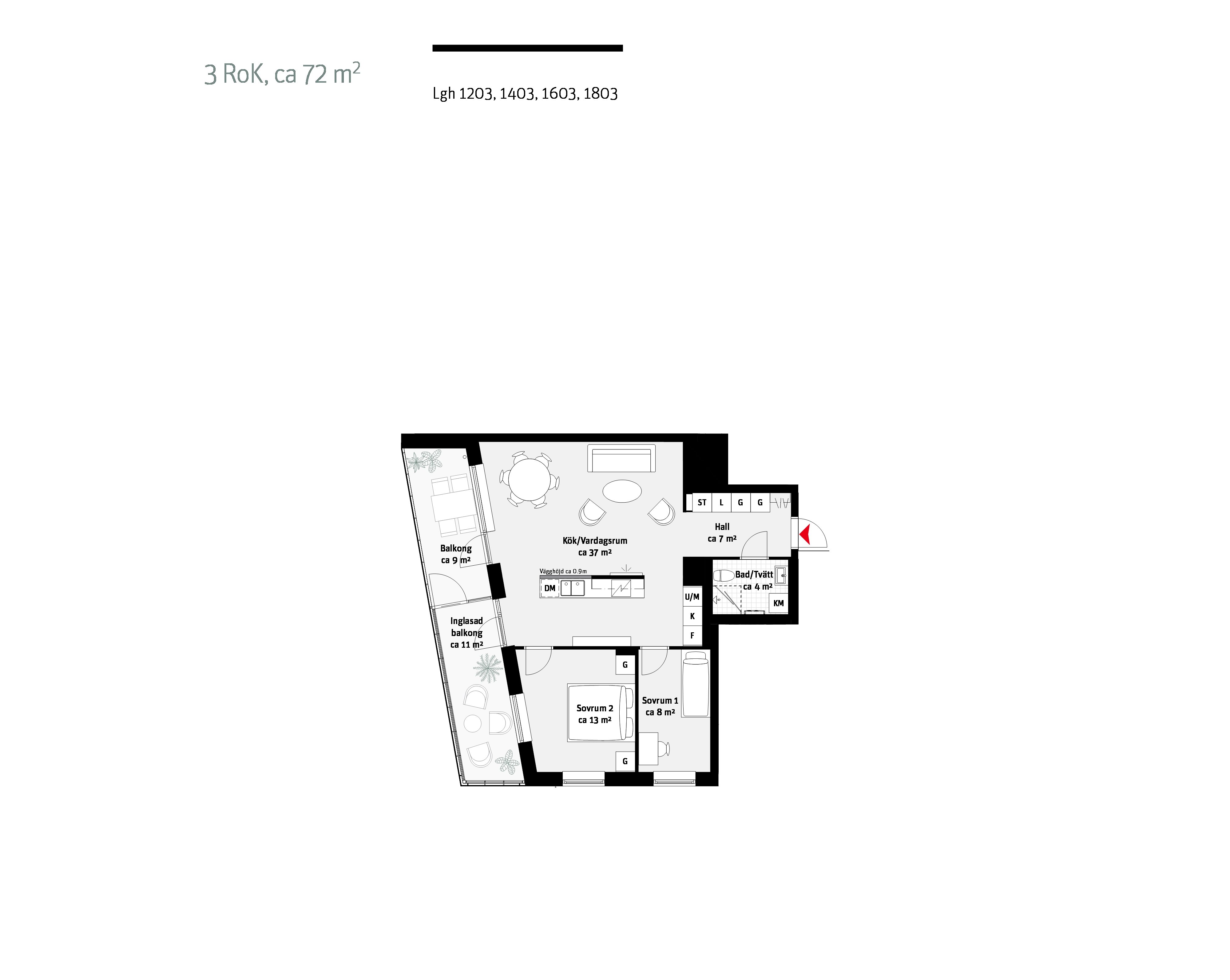 I Brf Panoramautsikten får alla lägenheter 2–6 rum och kök en generös balkong, vissa av dem två och till och med tre balkonger. För att du ska få en utemiljö som kan användas i alla väder, året runt har vi glasat in minst halva balkongen. Med den inglasade delen förlänger du utesäsongen och skapar ett extra rum för odling och umgänge. Det är stort nog för att både sitta eller odla kryddor. Här kan både du, dina vänskaper och basilikan växa och trivas.