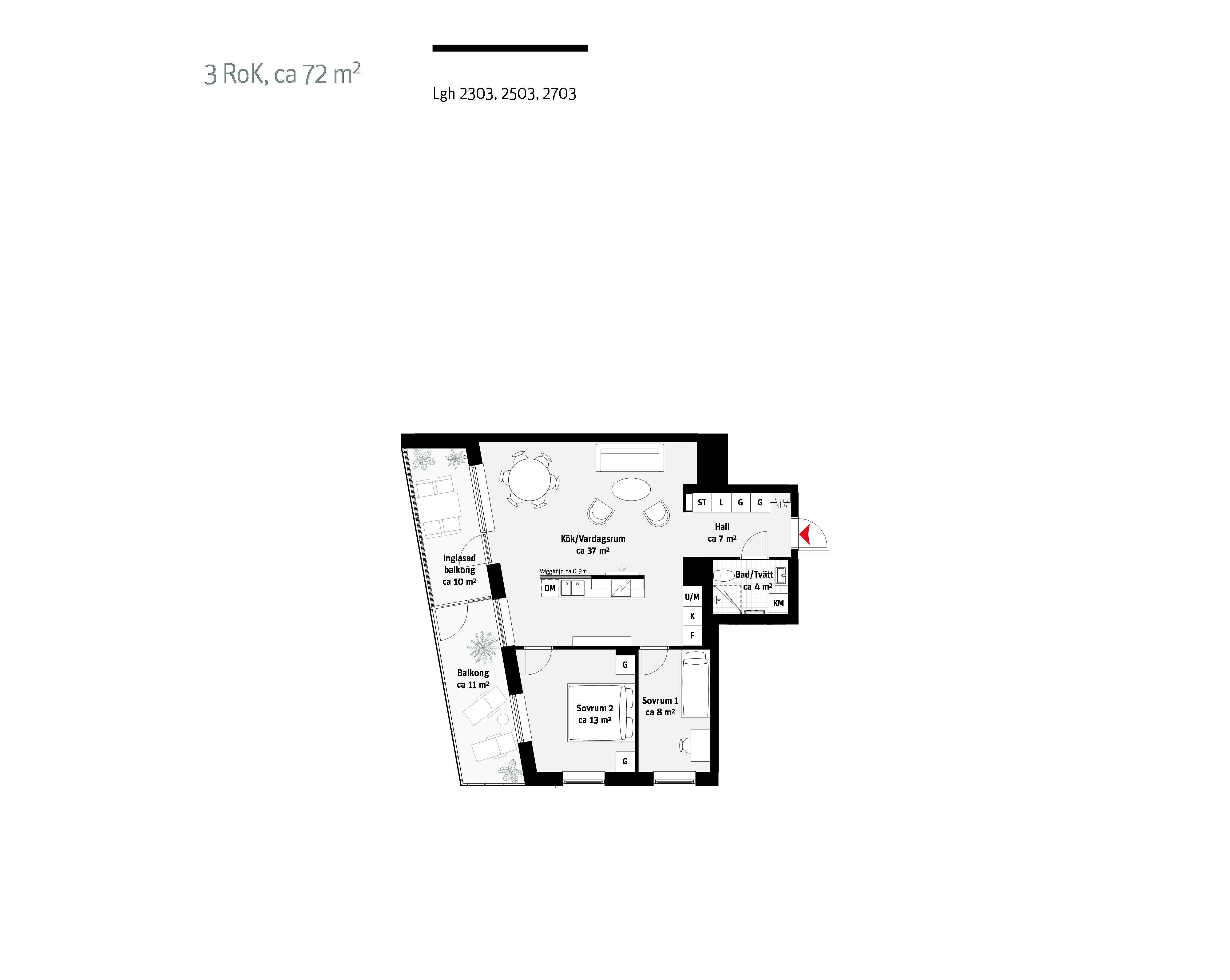 • 3 rum och kök 72 kvm: Lägenhet 1102, 1302 och 1502