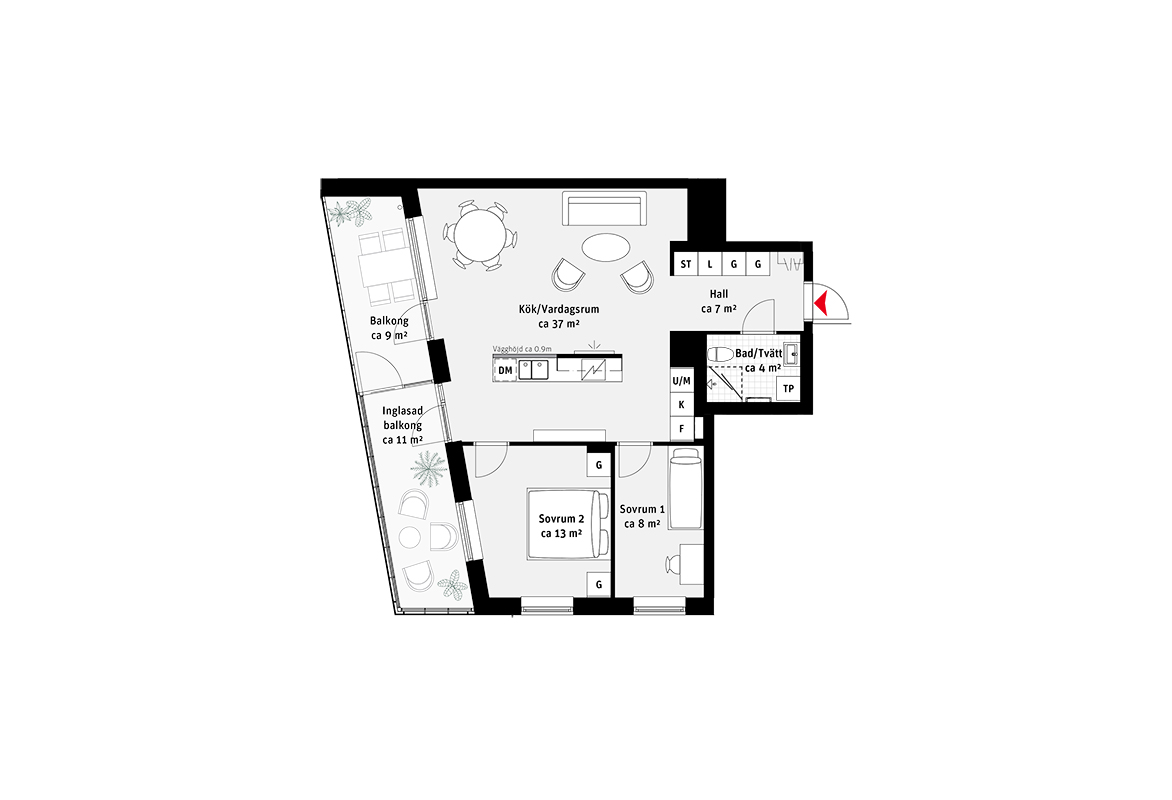 • 2 rum och kök 49-50 kvm: Lägenhet 2006, 2206 och 2306