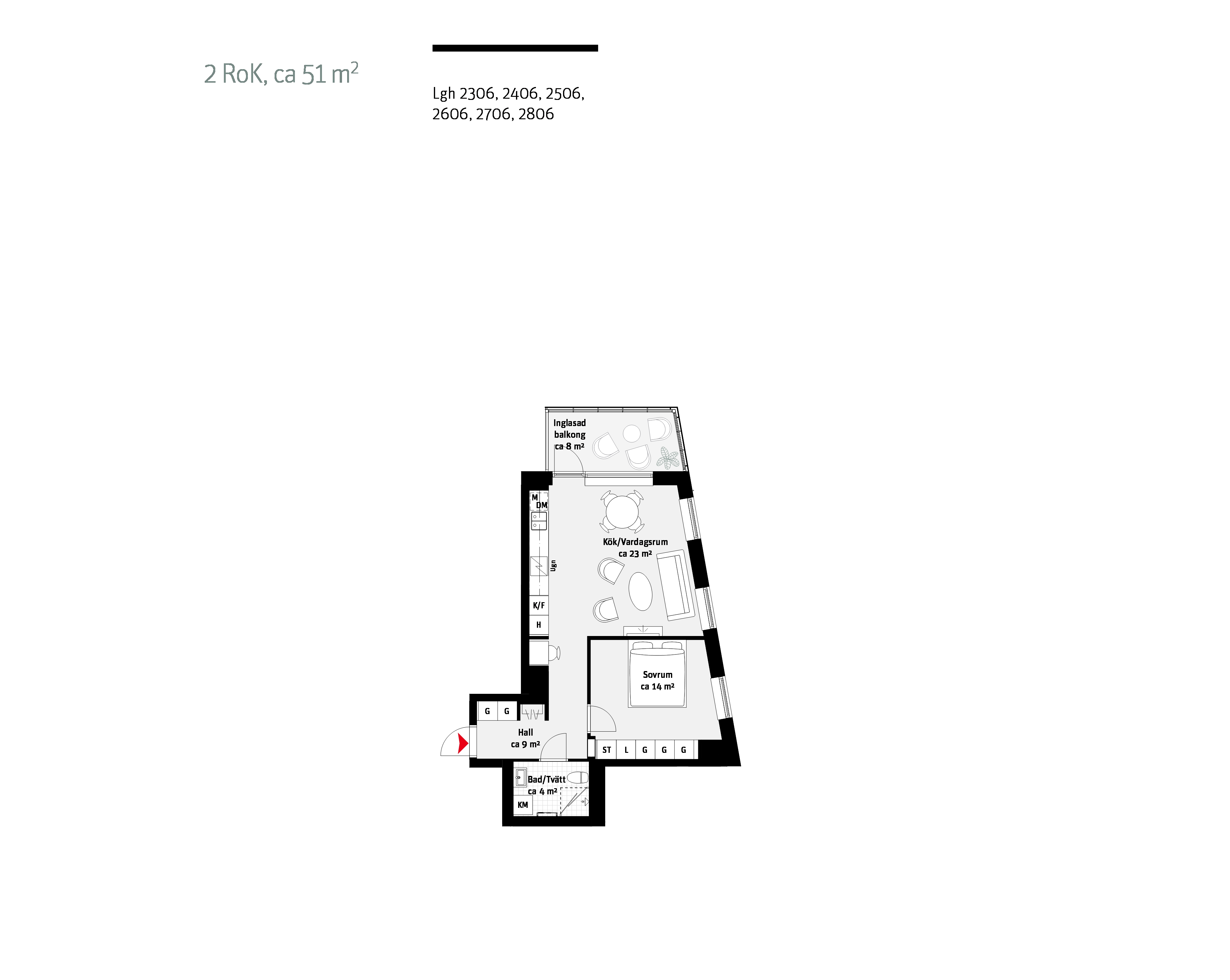 • 2 rum och kök 49-50 kvm: Lägenhet 2006, 2206 och 2306