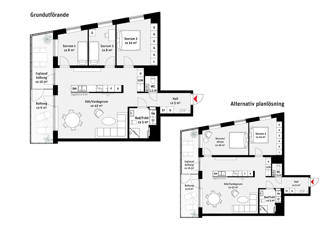 I Brf Panoramautsikten får alla lägenheter 2–6 rum och kök en generös balkong, vissa av dem två och till och med tre balkonger. För att du ska få en utemiljö som kan användas i alla väder, året runt har vi glasat in minst halva balkongen. Med den inglasade delen förlänger du utesäsongen och skapar ett extra rum för odling och umgänge. Det är stort nog för att både sitta eller odla kryddor. Här kan både du, dina vänskaper och basilikan växa och trivas.