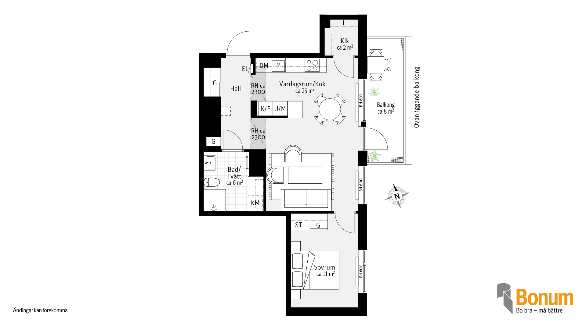 Lägenhet 2 rum och kök om ca 52 kvm. Kök och vardagsrum i öppen planlösning men köket är delvis avskilt från vardagsrummet. Den inglasade balkongen nås från vardagsrummet. I lägenheten finns skjutdörrsgarderober samt en klädkammare. I badrummet finns tvättutrustning. Lägenheten vetter mot den gemensamma innergården.