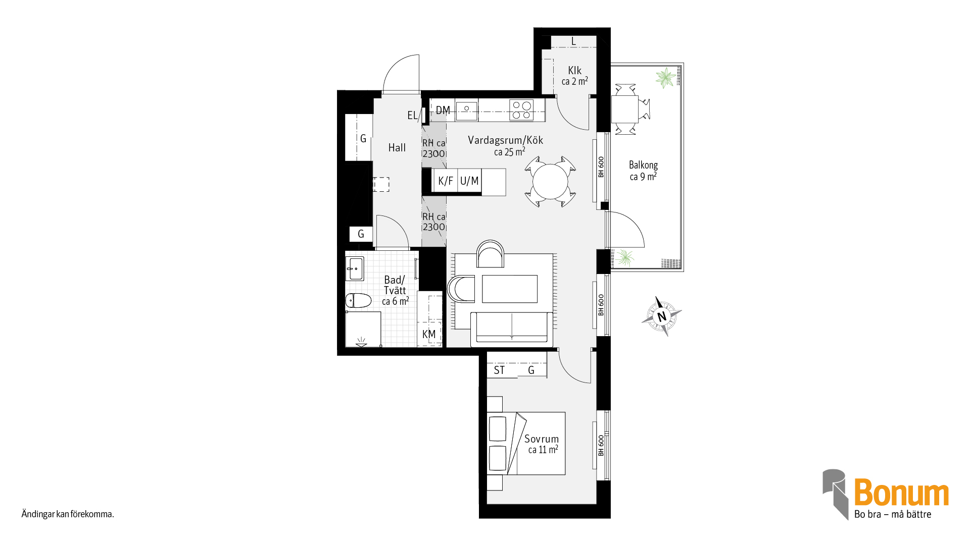 Lägenhet 2 rum och kök om ca 52 kvm. Kök och vardagsrum i öppen planlösning men köket är delvis avskilt från vardagsrummet. Den inglasade balkongen nås från vardagsrummet. I lägenheten finns skjutdörrsgarderober samt en klädkammare. I badrummet finns tvättutrustning. Lägenheten vetter mot den gemensamma innergården.