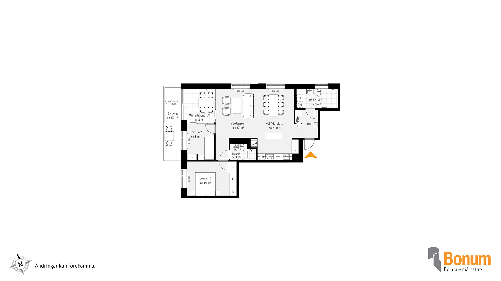 Gavellägenhet i västerläge med villakänsla. Balkong i väster med intilliggande vinterträdgård med väggar av glas för njutbara stunder. Stort vardagsrum/kök med köksö. Badrum med tvättmaskin och torktumlare samt wc/dusch. Bläddra i inredningsmagasinet för att välja inredning i din nya bostad. I lägenhetsväljaren kan du se var lägenheten ligger i huset.