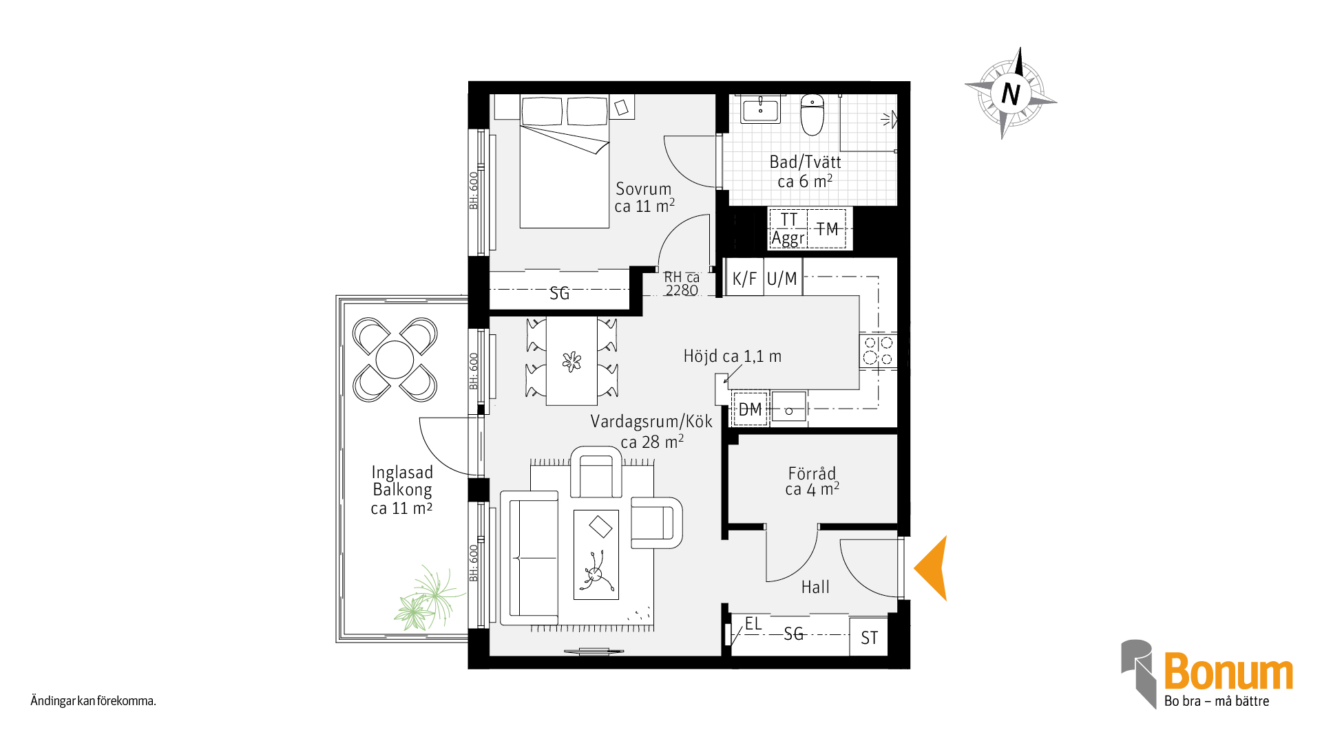 Välplanerad tvåa med allt du behöver. Stor inglasad balkong i sydvästläge och stora fönsterpartier som ger rikligt med ljusinsläpp. Bra förvaring i hall och sovrum.