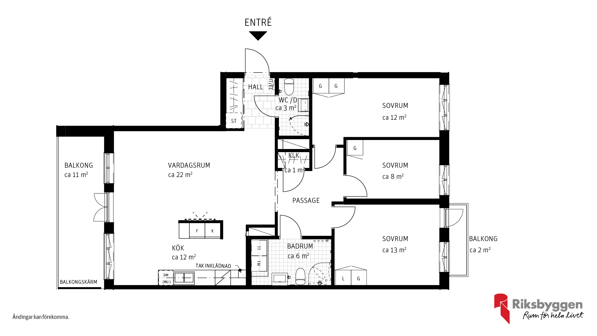 Öppen 4:a med två balkonger | Riksbyggen