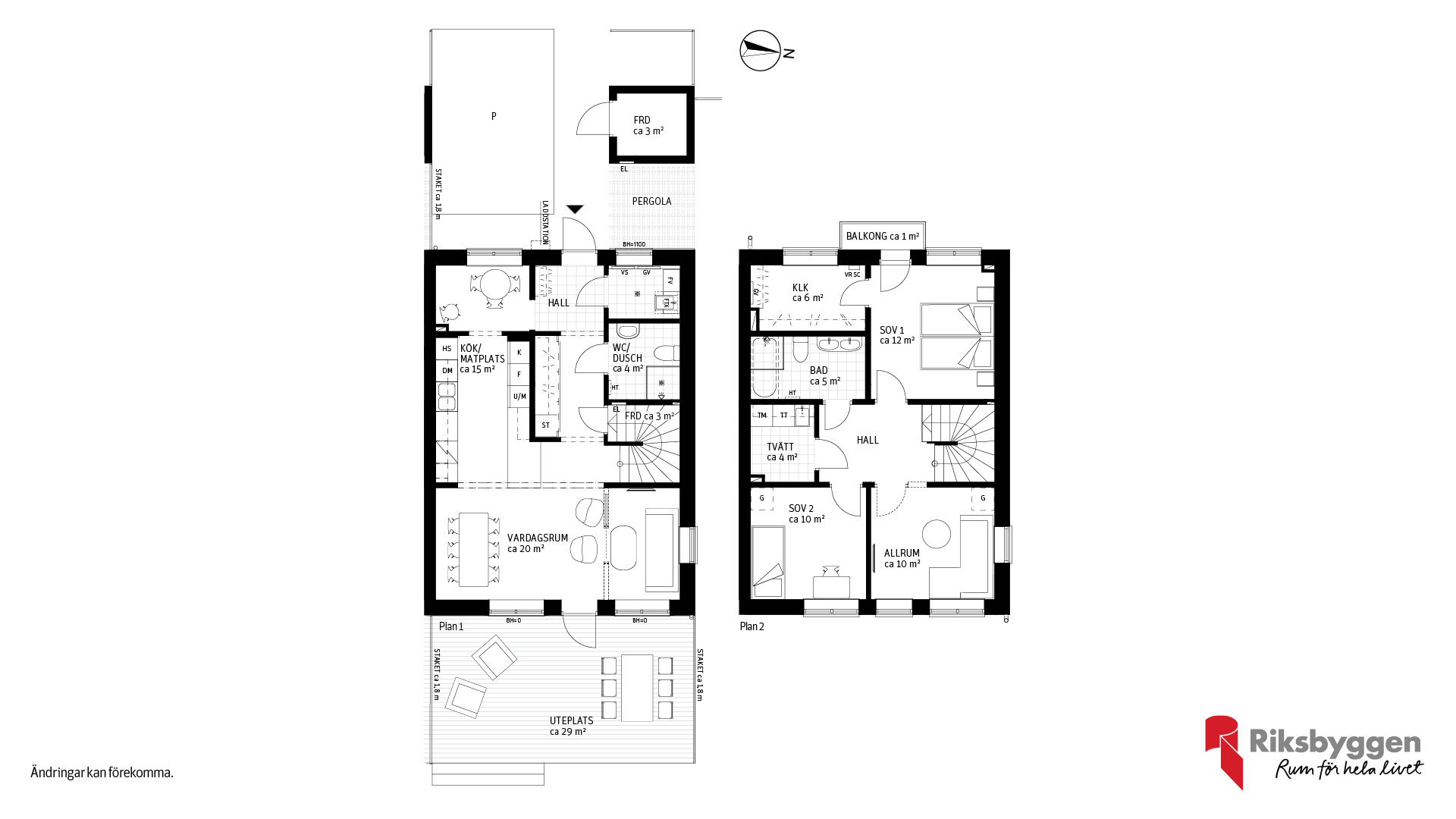Flexibelt boende när livet förändras, kan byggas med 2-4 sovrum. Det är dubbla badrum med generösa ytor. I grovhallen i entrén tar du av dig skitiga stövlar eller tar hand om hunden. Köket är gjort för både fest och vardag. Plan ett är den sociala delen och plan två är mer privat, med sovrum och allrum. På plan 2 finns även tvättstugan så du slipper släpa tvätten mellan de olika planen, och ett generöst badrum med dubbelhandfat. Vi har skapat uteplatser åt två håll för sol hela dagen.
