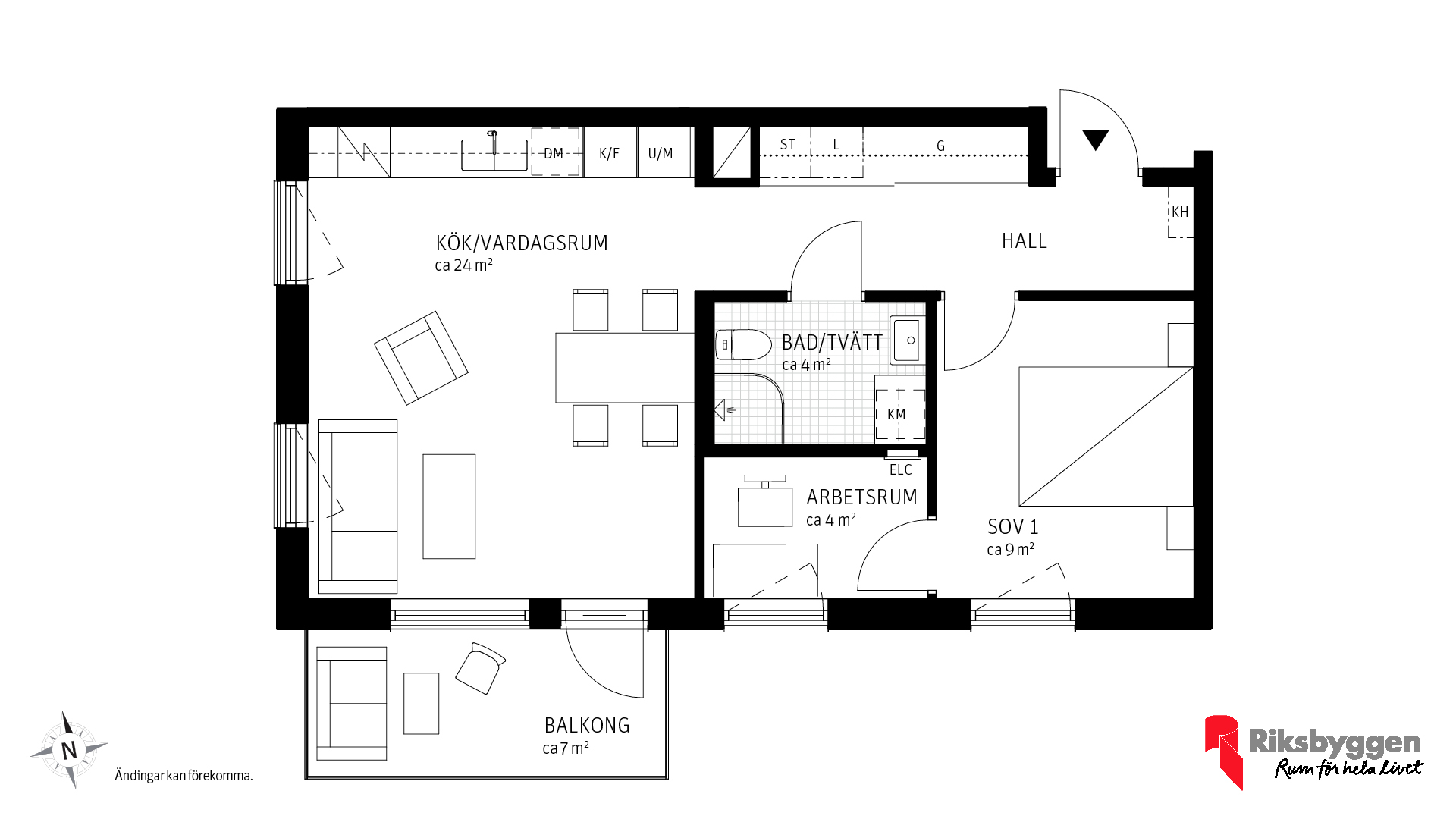 Trivsam tvårummare med hörnläge mot Linverket. Här är det öppen planlösning mellan kök och vardagsrum med utgång till balkong i soligt söderläge. Hall/entré med avhängningsmöjligheter och en innerhall med skjutdörrsgarderob i anslutning till helkaklade badrummet. Från sovrummet är det ingång till en klädkammare försett med fönster som förslagsvis även kan nyttjas till ett mindre arbetsrum.