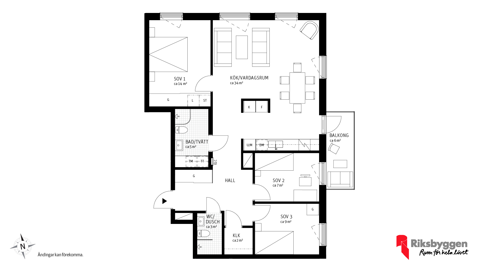 Välkommen till en fint planerad fyrarummare med stora sociala ytor, fönster i två väderstreck och balkong med förmiddagssol i österläge. I denna familjevänliga bostad finns hall med praktisk skjutdörrsgarderob, två helkaklade badrum med dusch, tre sovrum varav det största har bra förvaringsmöjligheter i skjutdörrsgarderob längs med ena väggen och i anslutning till de två andra sovrummen finns en klädkammare för bra förvaringsmöjligheter.
