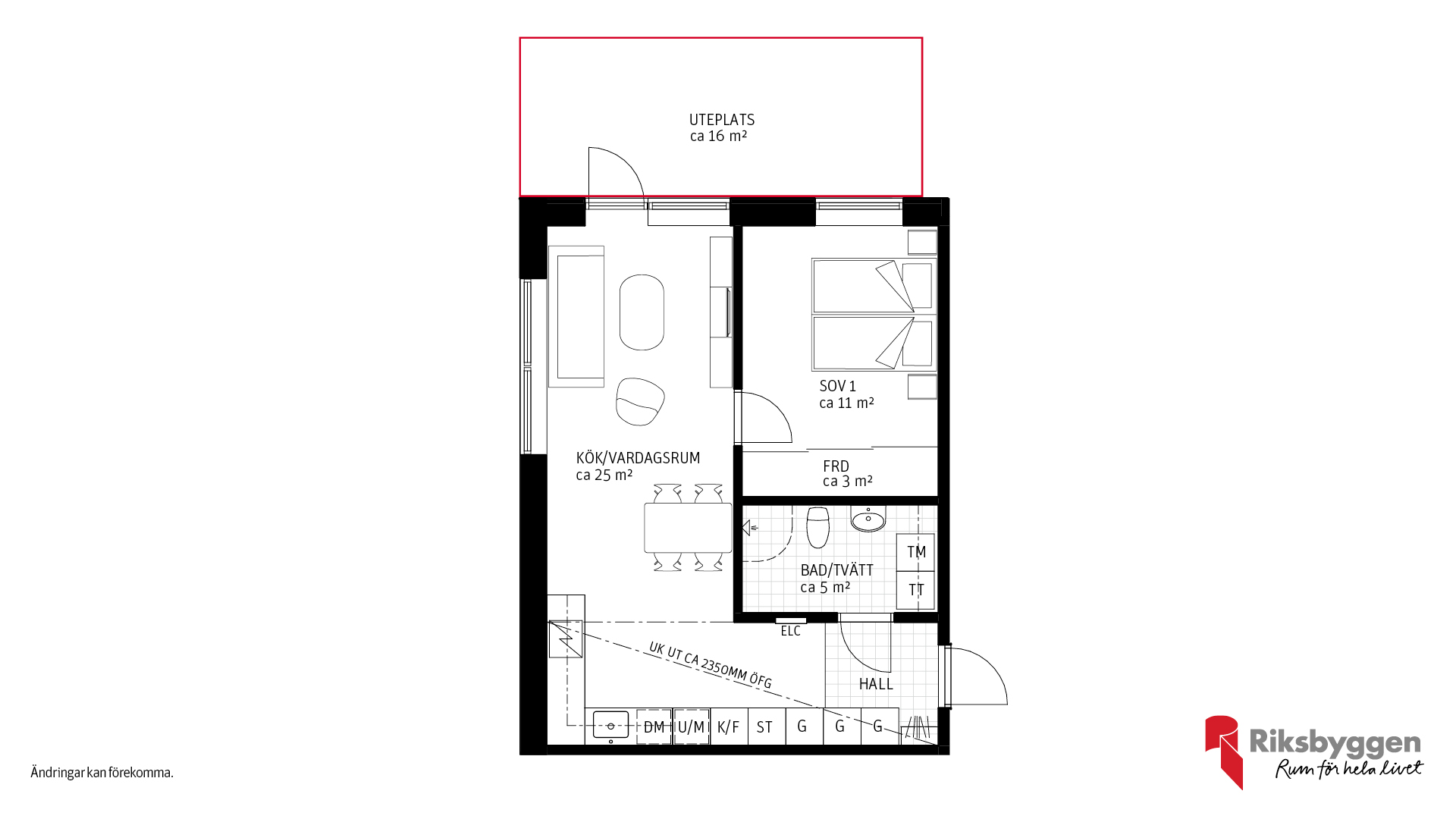 Här har vi tänkt till för att ge dig ett hem som passar just din livsstil. För dig som vill ha extra rymd och sociala ytor finns möjlighet att välja bort vissa innerväggar – till exempel mellan sovrum och vardagsrum – och i stället få ett större, öppnare vardagsrum. Det är ett perfekt alternativ för dig som prioriterar kvadratmetrar och ljus framför antal rum.