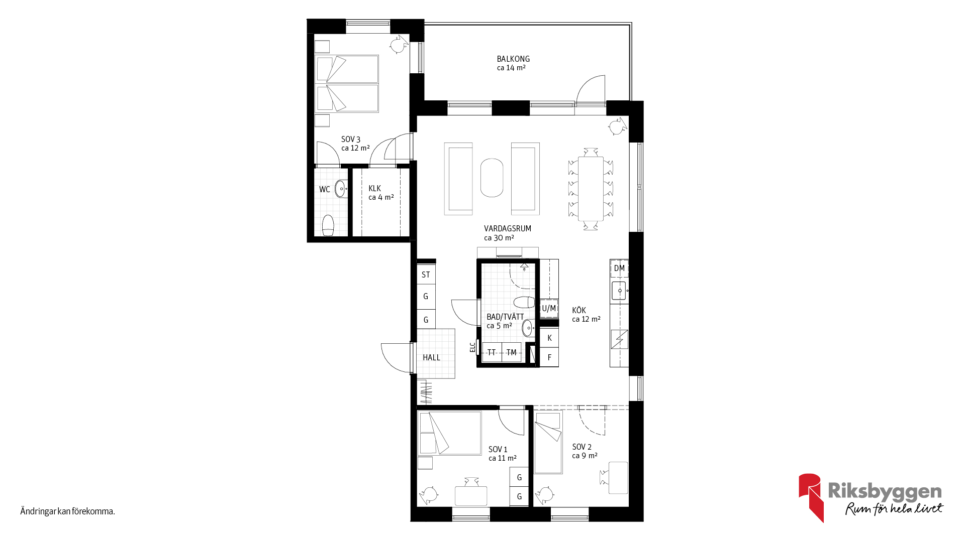 Här har vi tänkt till för att ge dig ett hem som passar just din livsstil. För dig som vill ha extra rymd och sociala ytor finns möjlighet att välja bort vissa innerväggar – till exempel mellan sovrum och vardagsrum – och i stället få ett större, öppnare vardagsrum. Det är ett perfekt alternativ för dig som prioriterar kvadratmetrar och ljus framför antal rum.