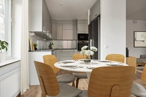 Tre rum och kök, full av livskvalitet! Socialt planerad lägenhet med kök, matplats och vardagsrum i öppen planlösning. Sovrum mot den lugna innergården där balkongen i solläge också hittas. Helkaklat badrum och generöst master bedroom med anslutande ljus klädkammare.