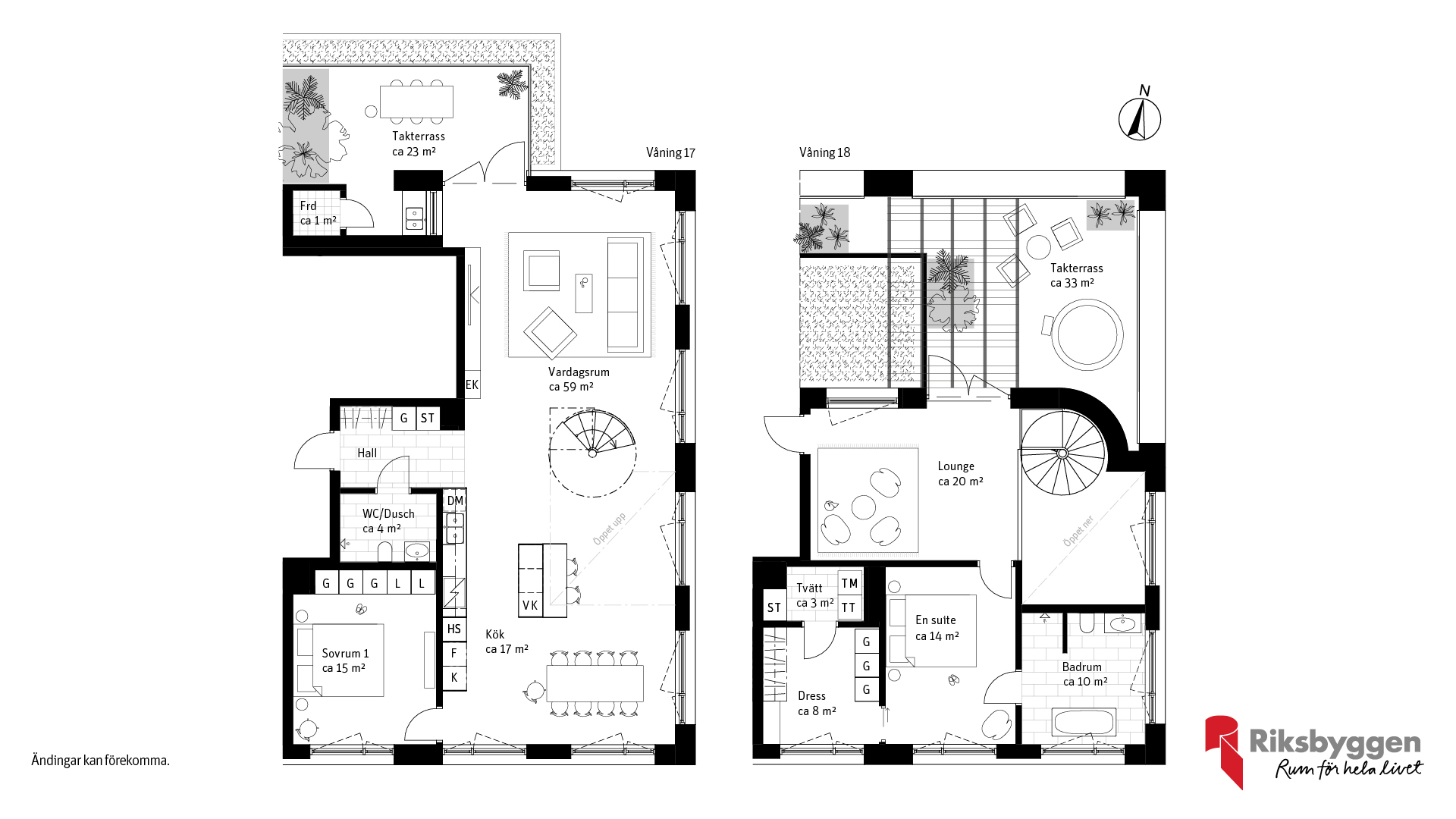 På de översta våningarna hittar du några av områdets allra häftigaste lägenheter, med härlig rymd, ytor från 124 till 167 kvadratmeter och egen, stor terrass i bästa utsiktsläge. Två av totalt sex taklägenheter byggs i etage, med en terrass på varje våning. En annan av taklägenheterna har ett helt våningsplan helt för sig själv. Från taklägenheterna kommer du kunna njuta av panoramat över älven och staden från badkaret om du vill. Hur coolt som helst!