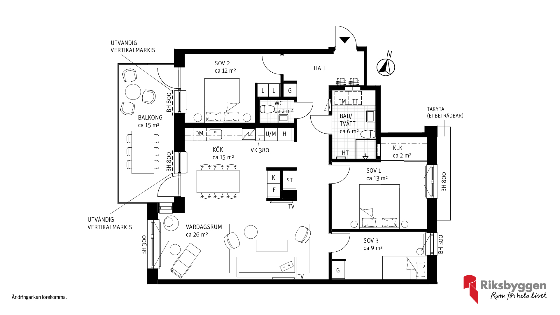 Om drömmen är en takvåning med privat terrass, så kan du förverkliga den i Brf Sydney. Här finns ett tiotal takvåningar i olika storlekar och utföranden. Vårt mest exklusiva alternativ är en fantastisk fyrarums penthousevåning på 145 kvm med 50 kvm egen terrass och två balkonger. Bor du här får du hela våningsplanet för dig själv, utan grannar vägg i vägg, och du kan ta hissen till din egen ytterdörr. Den stora, privata terrassen blir vad du gör den till; en plats för avkoppling, gemenskap eller gröna fingrar. Oavsett vilket kan du alltid njuta ostört av den fantastiska utsikten – soliga sommardagar eller stjärnklara vinternätter – terrassen bjuder in året runt.