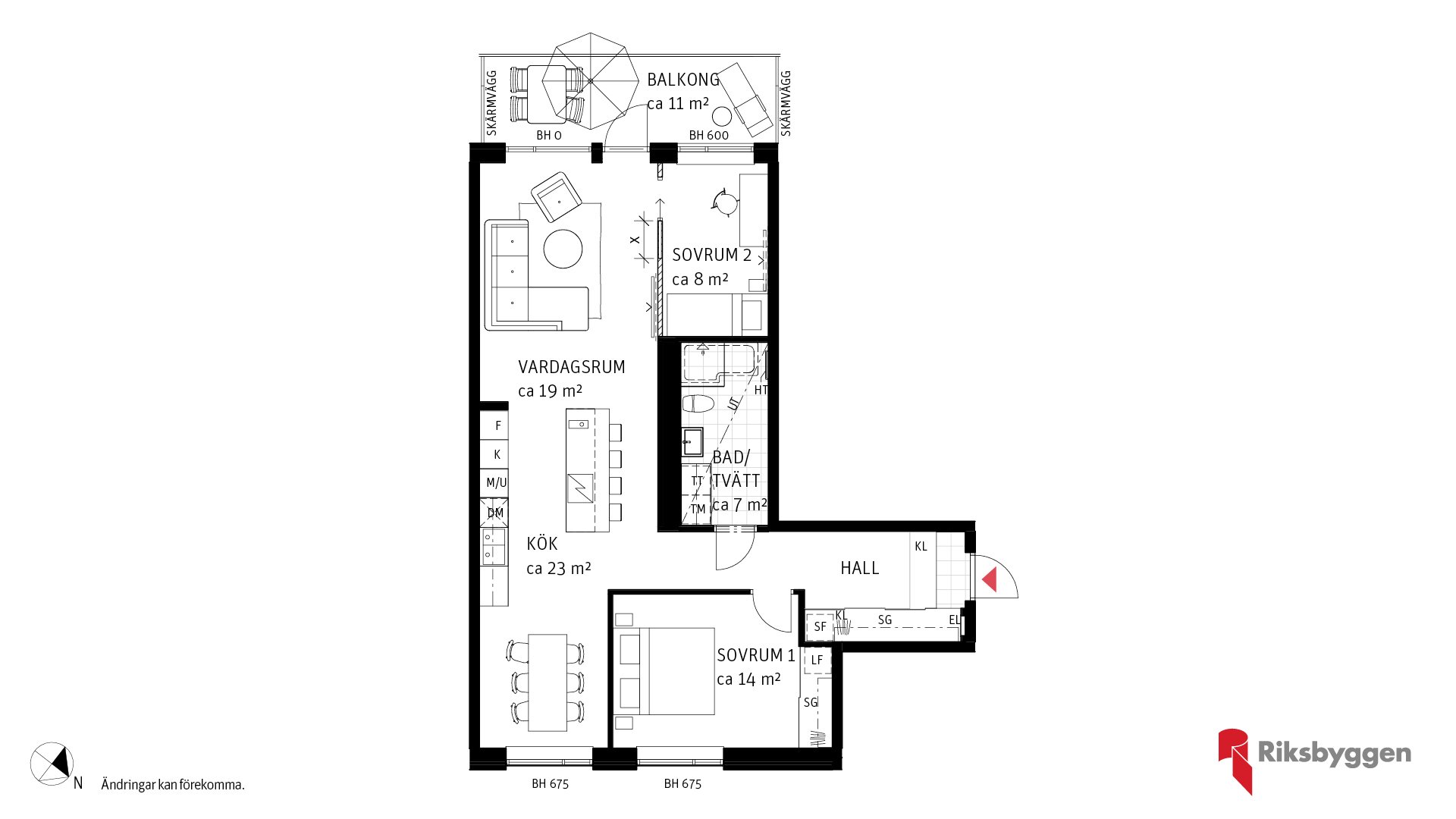 Trivsam 3 rum och kök om ca 85 kvm på första våning. Hall med skjutdörrsgarderob. Vidare in finns den öppna planlösningen mellan matplats, kök med köksö och vardagsrum. Köksön för social umgänge och för extra förvaring och avlastningsyta. Sovrum 1 med skjutdörrsgarderob. Sovrum 2 mot parken. Badrum med tvättmaskin och torktumlare, här finns möjlighet att göra tillval på badkar istället för duschhörna för den som önskar. Möjlighet att göra val på frånvalsvägg till förmån för ett större vardagsrum
