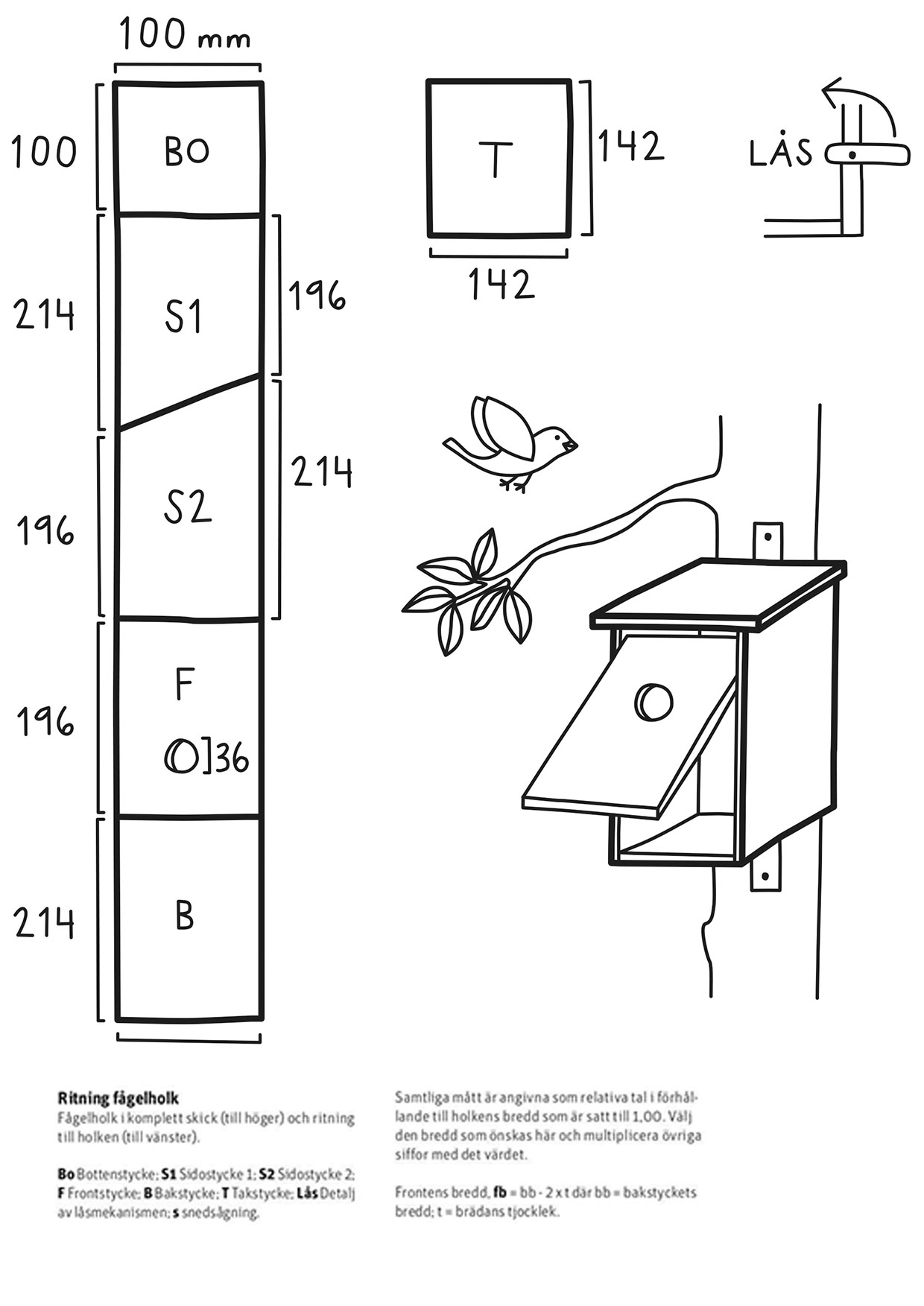 1. Se ritningen för att bygga en fågelholk.